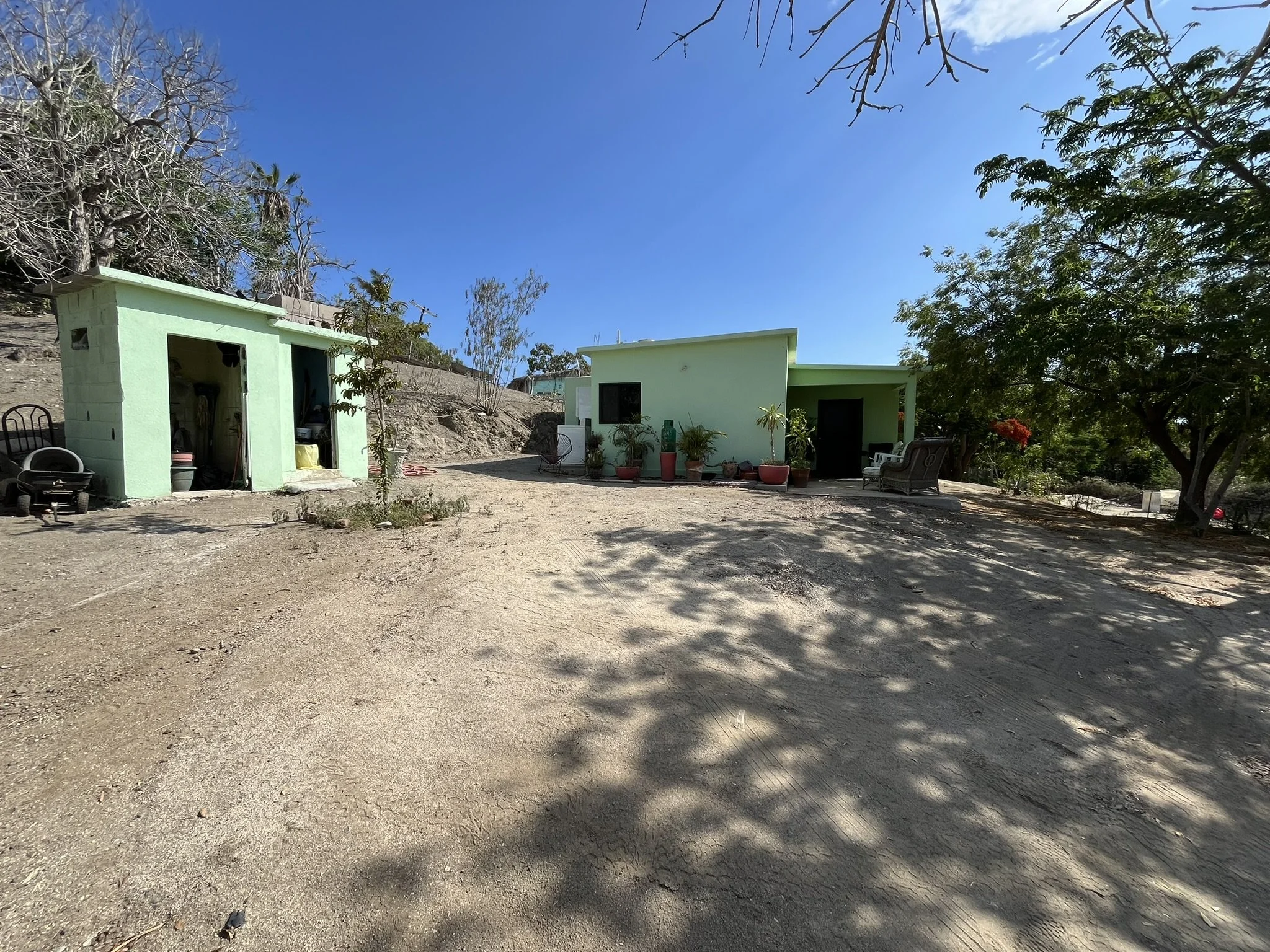Discover this charming 1200 m² (⅓ acre) lot in the heart of Pescadero, offering incredible potential and room for expansion. This beautiful home boasts 2 spacious bedrooms, 1 full bathroom, and features new tile floors and updated windows, filling the open living space with natural light. The property is surrounded by mature trees, creating a peaceful, private atmosphere, while providing ample room to build a second casita or even add a second floor for extra living space!